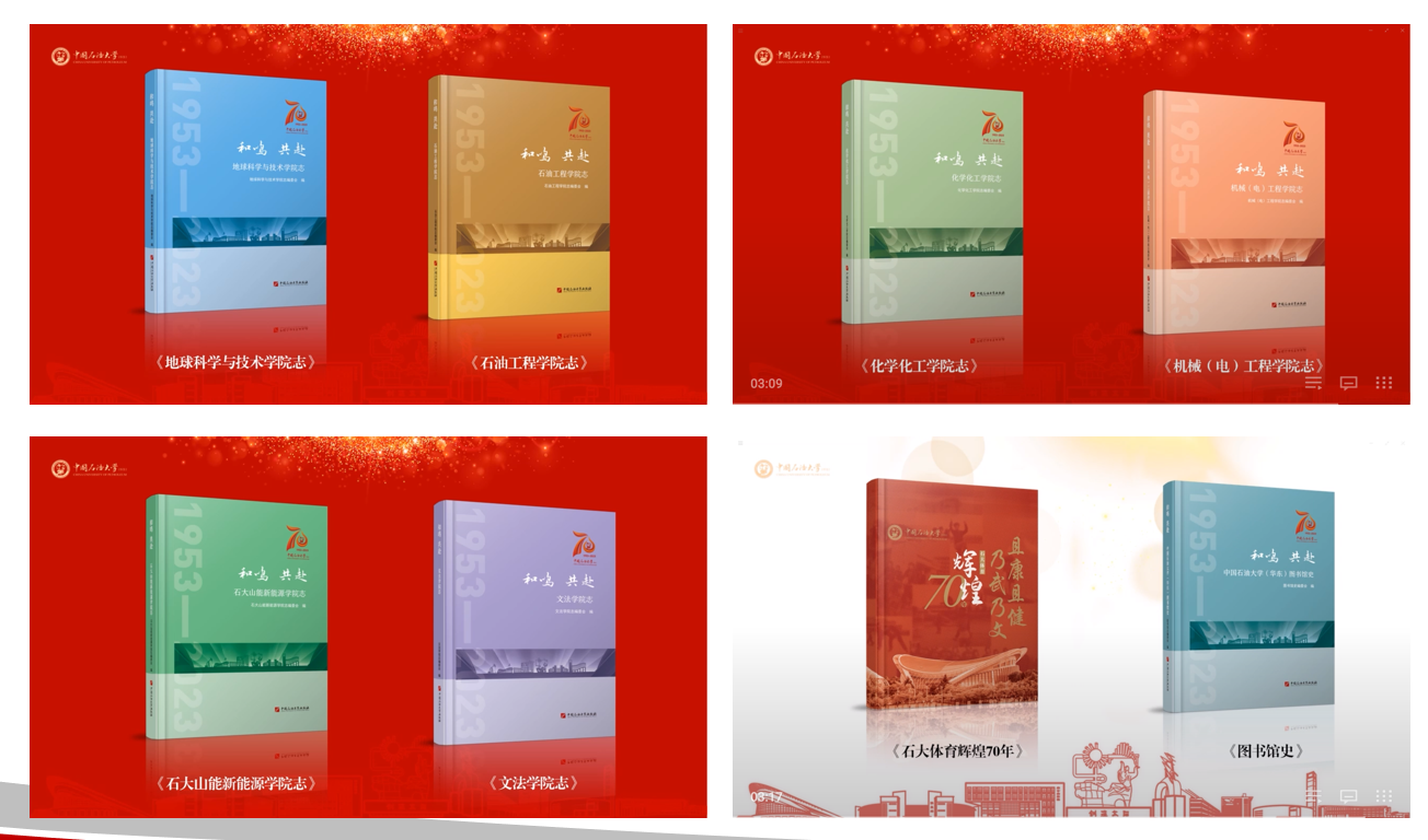 数字档案资源在学校70周年校庆、历史文化丛书编纂、学校文化建设等方面发挥了基础和支撑作用。档案馆牵头编写《437ccm·必赢国际校史》《征程——437ccm·必赢国际(华东)年谱(1953-2023)》以及《风雅石大——437ccm·必赢国际(华东)校藏书画精品》等总字数达188万字的多部著作;协调推动了9部系列院史的编纂工作。提供了全方位的档案资料支持、历史照片以及编写咨询服务等;为学校纪录片拍摄、师生风采展演等校庆活动提供多元档案资源服务。