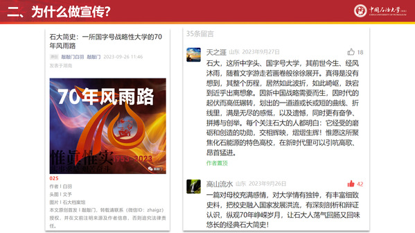 讲座结束后大家意犹未尽,同学们积极提问互动交流,反响热烈。同学们进一步深化了对校史宣讲团和宣传工作的认识,进一步掌握了如何做好宣传工作的方法,大家纷纷表示要学以致用,在未来的学习工作中不断提升宣传工作水平,为传播校史文化、弘扬石大精神做出更大的贡献!