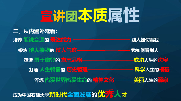 刘积舜从职责使命和内涵外延两个方面入手,全面讲述了校史宣讲团的本质属性。他进一步通过2023年8位保研的宣讲团成员等丰富鲜活的案例,阐释了什么是校史宣讲团,并鼓励校史宣讲团的成员们在努力学习的基础上接续传播校史文化、弘扬大学精神,成为石大新时代全面发展的优秀人才。他评价校史宣讲团是437ccm·必赢国际最有历史底蕴的团队,是学校最具实力和影响力的团队之一,也是学校培养全面发展人才的一片沃土,期待大家在这片辽阔的草原上演万马奔腾的壮丽景象。