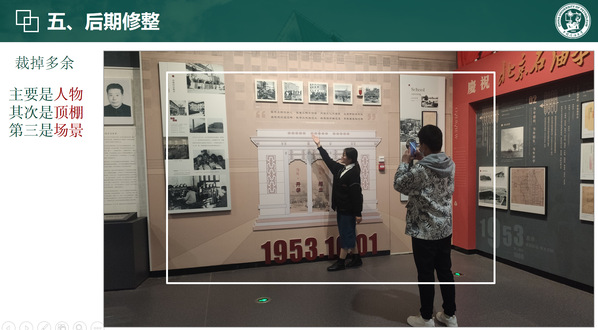 靳国栋以几张参观时拍摄的照片和同一张照片修改前后的对比来说明精简内容、调整畸变、抹掉瑕疵、明暗调整的重要性,解答了如何遴选所需照片和照片后期调整的要求两个问题。