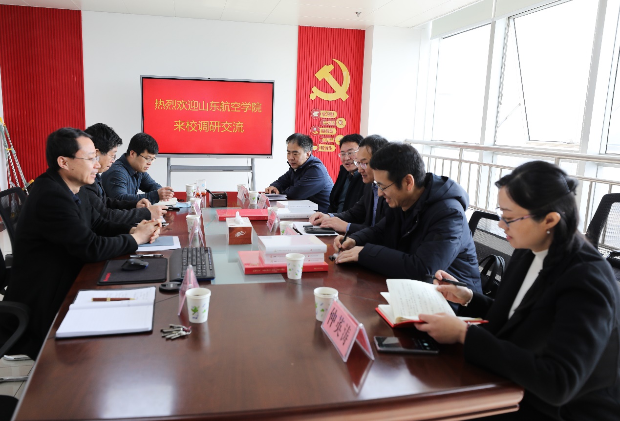 山东航空学院离退休工作处副处长路来庆、工会副主席王树斌、档案管理科科长仲英涛;我校档案馆校史研究部主任马梦华、综合管理部主任张大宇参加调研。