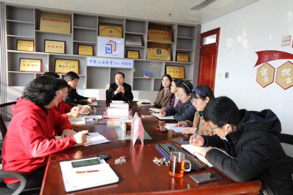刘积舜结合学校新学期工作会精神,对档案馆、校史馆2024年主要工作进行了部署和安排:一是努力打造“数字档案馆”石大样板。馆藏档案数字化率提升至70%,综合档案管理系统、远程利用系统、声像档案管理系统臻于完善,持续扩大三大系统的示范效应,形成典型经验,在业内产生广泛影响,大幅提升服务学校和师生校友的能力和质量,为每一位查询者提供满意的服务,推动单套制管理取得实质进展,确保档案资源的安全。二是形成石大鲜明特色校史“文化品牌”。加强对校史资源特别是声像资源的挖掘、研究与成果输出,校史育人品牌活动影响力和效果更加突出和明显,力争在山东省、教育部申报成功关于思政和文化项目、奖项,形成校史文化、校史人物的相关出版物,举办相关展览。三是校史馆“功能共同体”作用持续上扬。启动智慧校史馆二期建设,加大实物展陈布局,挖掘精神文化亮点,高水平、高效能做好校史馆运营,为学校合作交流、师生校友、社会公众提供高质量参观服务,在思政育人、文化传播、精神孕育等方面继续发挥重要作用,获得省部级以上平台2-3个,努力建成区域文化新地标和石油文化新高地。