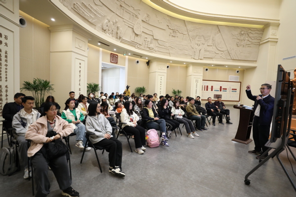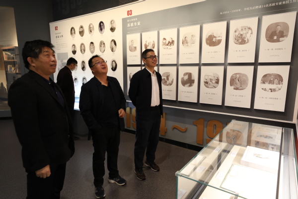 讲座结束后,韩辛一行在档案馆副馆长、校史馆馆长靳国栋陪同下参观了校史馆。