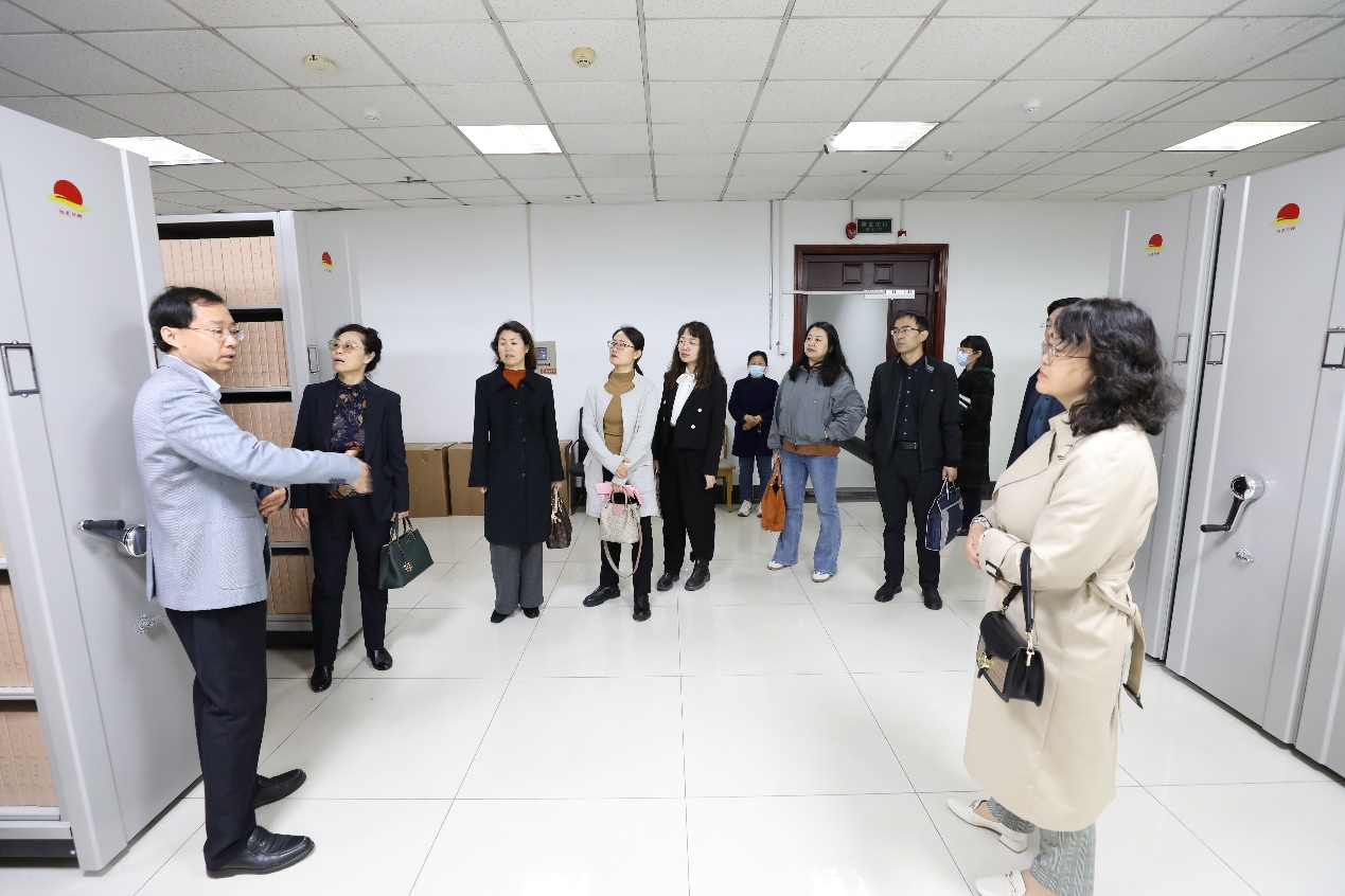 调研团队还实地考察了学校档案库房,并现场观看了学校新升级的智慧档案管理系统和437ccm·必赢国际历史文化资源数字平台。