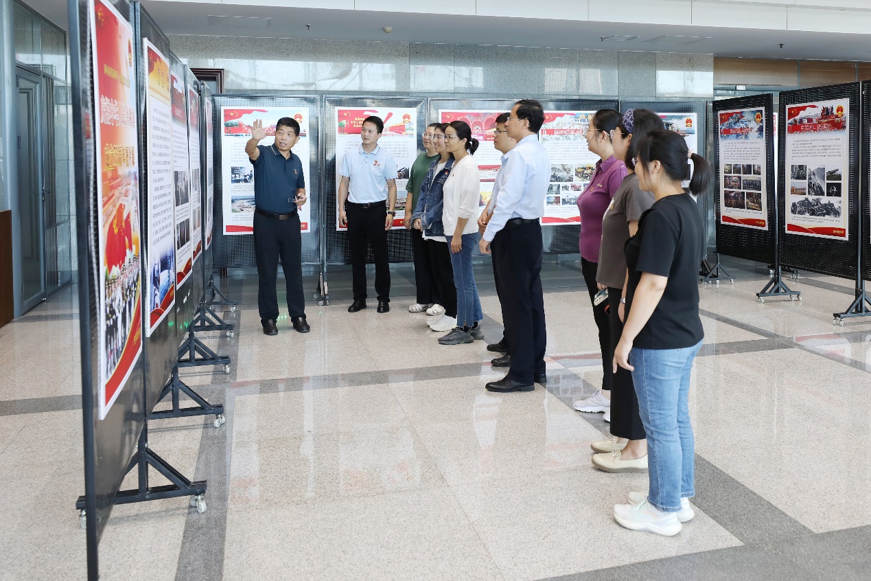展览现场,一幅幅珍贵的历史照片、一组组激动人心的数据、一幅幅精心设计的展板,生动展现了新中国从诞生到繁荣壮大的光辉历程。从马克思主义思想在中国的传播,到中国共产党领导人民推翻三座大山、建立新中国的壮丽史诗;从新中国初期的艰苦创业,到改革开放的春风吹遍大地,再到新时代中国特色社会主义的蓬勃发展,每一幅画面都承载着厚重的历史记忆,每一段文字都饱含着对伟大祖国的深情厚谊。