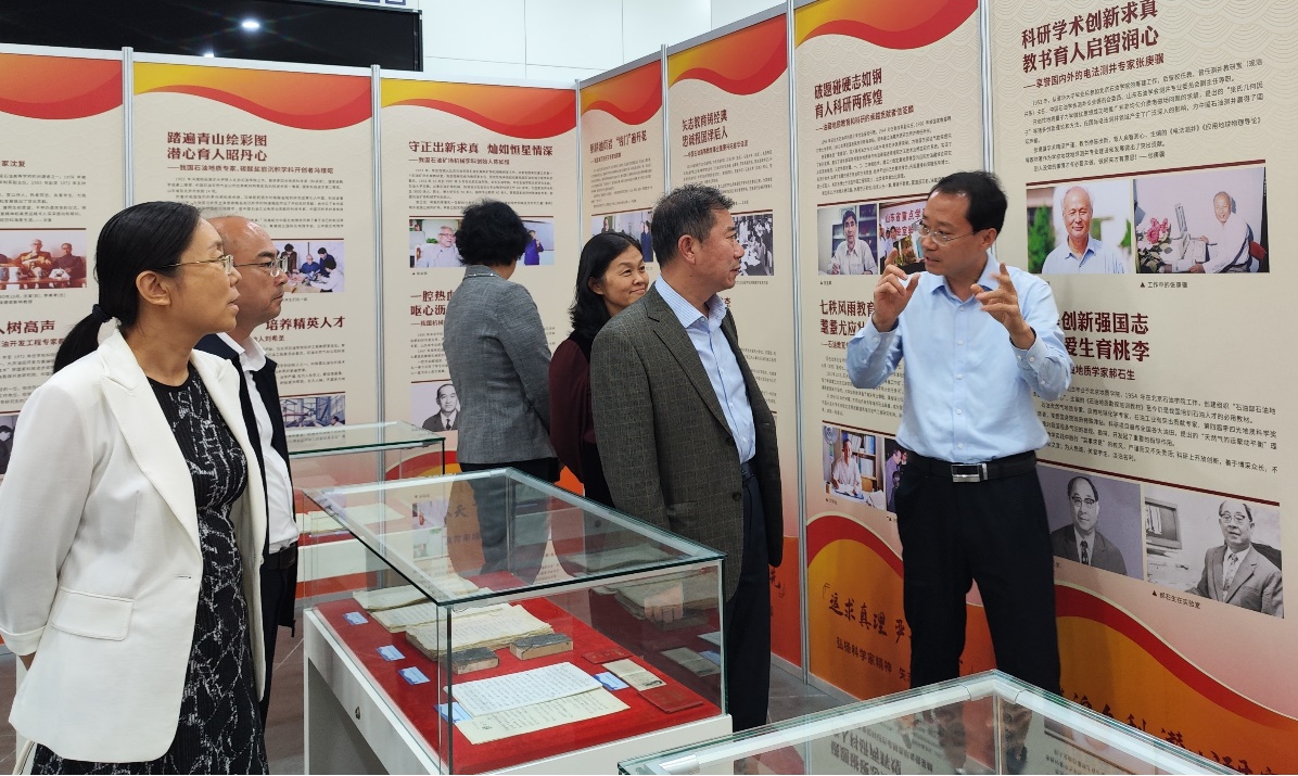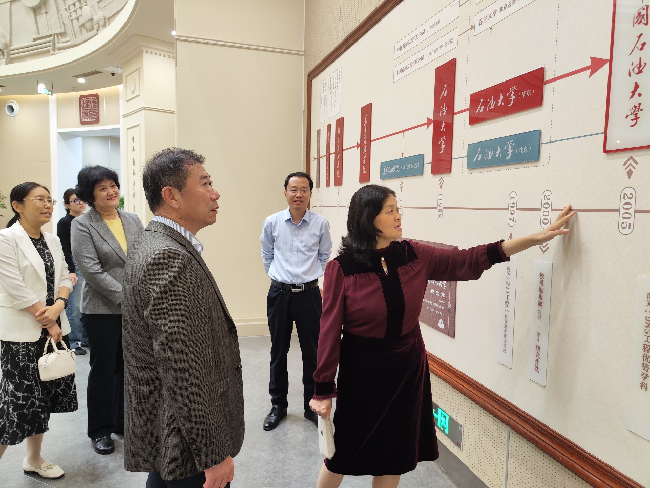 参观校史馆过程中,姚振清一行听取学生讲解员马晓荟对437ccm·必赢国际发展历程的详细介绍,特别是对学校老一辈科学家和培养出的杰出校友在石油勘探、开发等领域及科研报国方面做出的突出贡献。