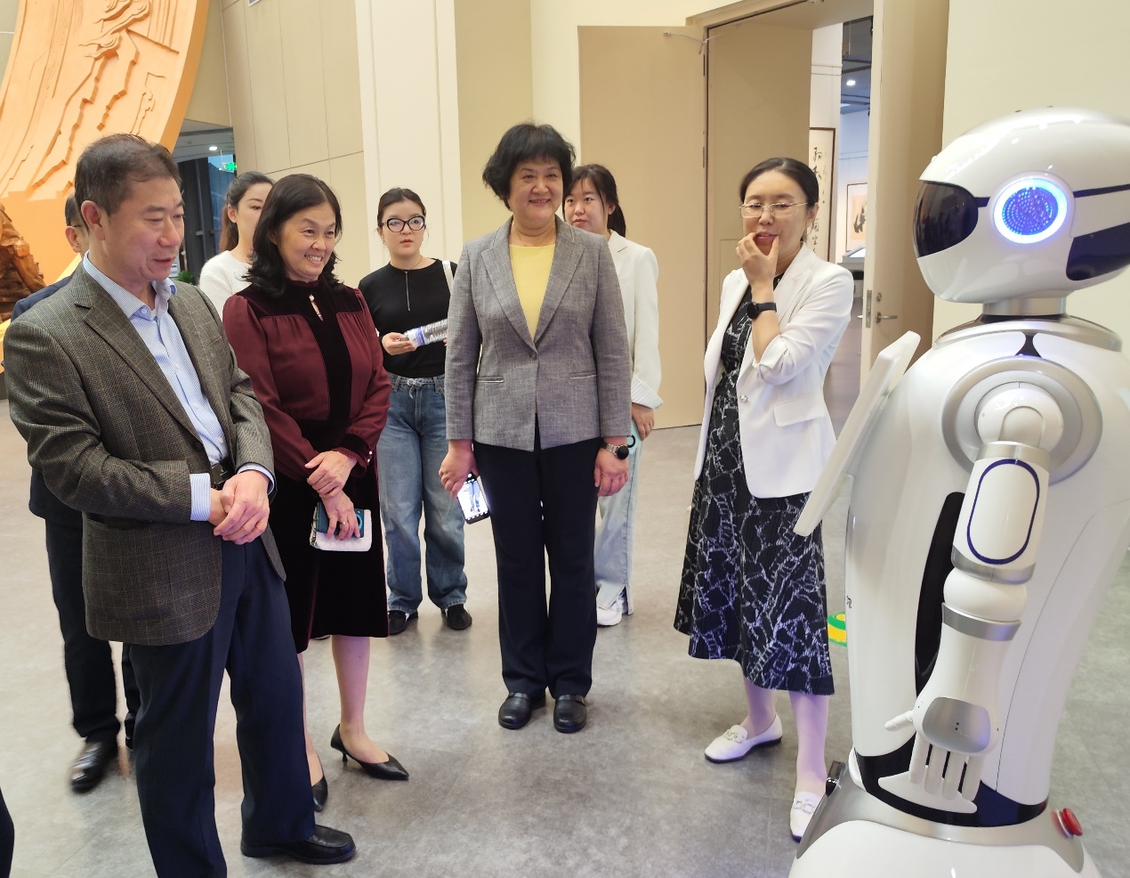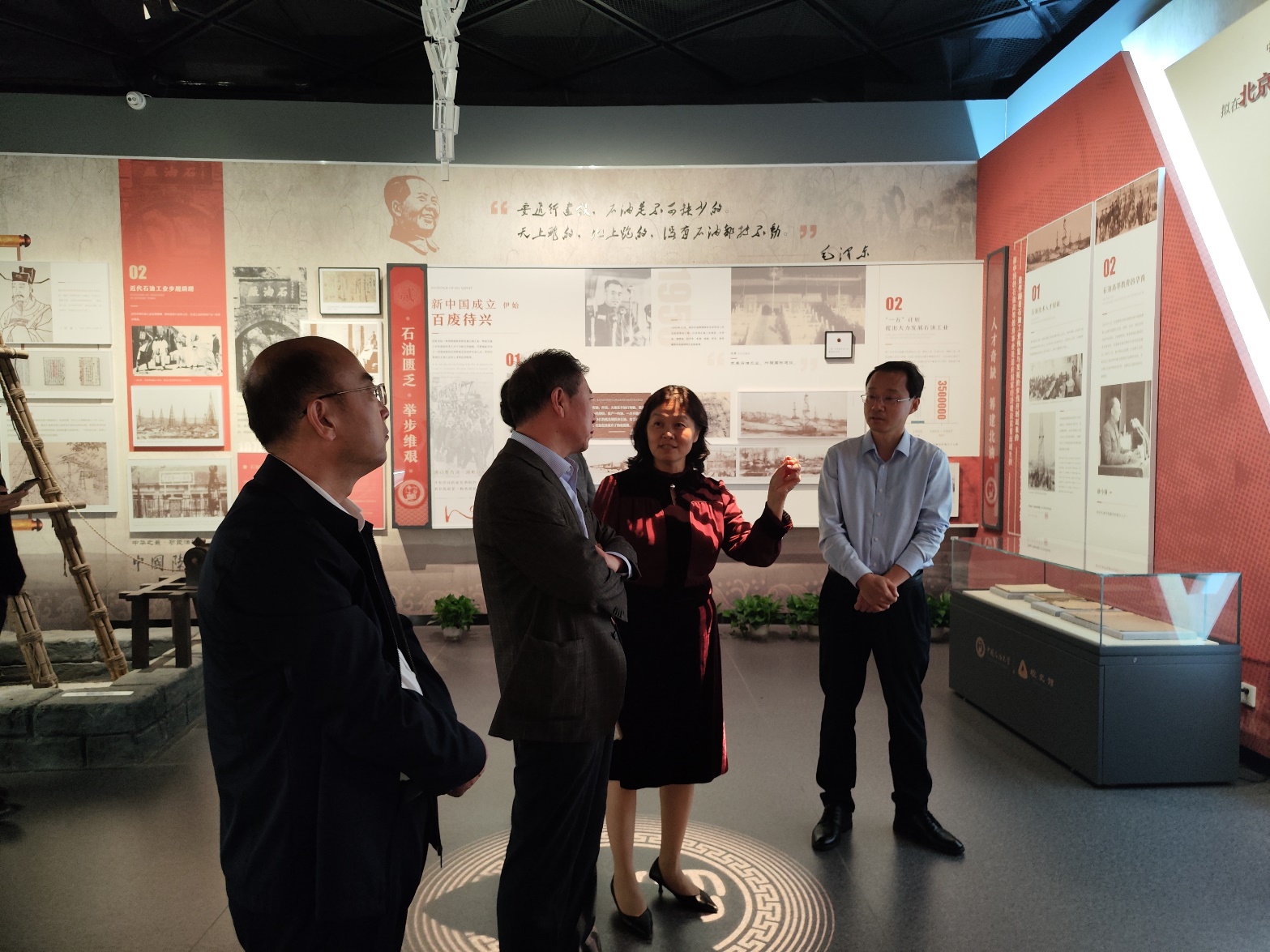 校史馆内丰富的历史照片、实物资料以及多样化的科技展示手段,生动再现了石大人秉承着科学家精神的优良传统,艰苦奋斗、勇于探索的精神风貌,调研组还与智能讲解机器人展开了互动。