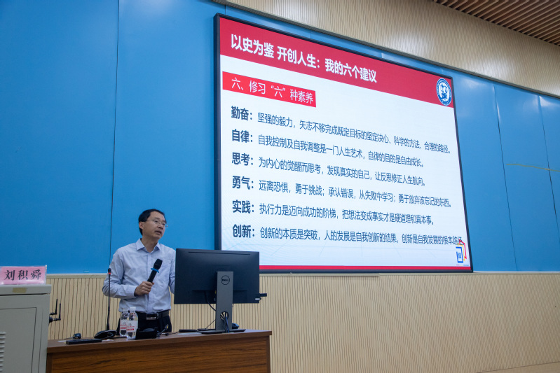 刘积舜在报告中强调,学习历史是为了汲取力量,启迪未来,为同学们提了六点建议,希望同学们能够设定高远且可行的目标,努力培养科学素养与人文情怀,深入思考什么是大学、我是谁、如何读好大学,笃交实验室、图书馆、运动场、活动角四个朋友,乐享报告、比赛等“五件”学习生活趣事,修习勤奋、自律、思考、勇气、实践、创新等六种素养,号召新生践行石大精神,勇于追求卓越。“学习校史后,我深深地感受到新一代石大人的责任与使命。石大的成就离不开前辈们的无私奉献和艰苦付出,他们的高尚品质值得我们每个人学习,也让我们钦佩。以后我会把石大精神融入我的学习和生活之中,按照刘老师的六点建议过好大学生活,在砥砺前行中感受校史精神,争做一位勇攀高峰的石大学子。”地理信息科学专业2024级新生张弓感悟道。