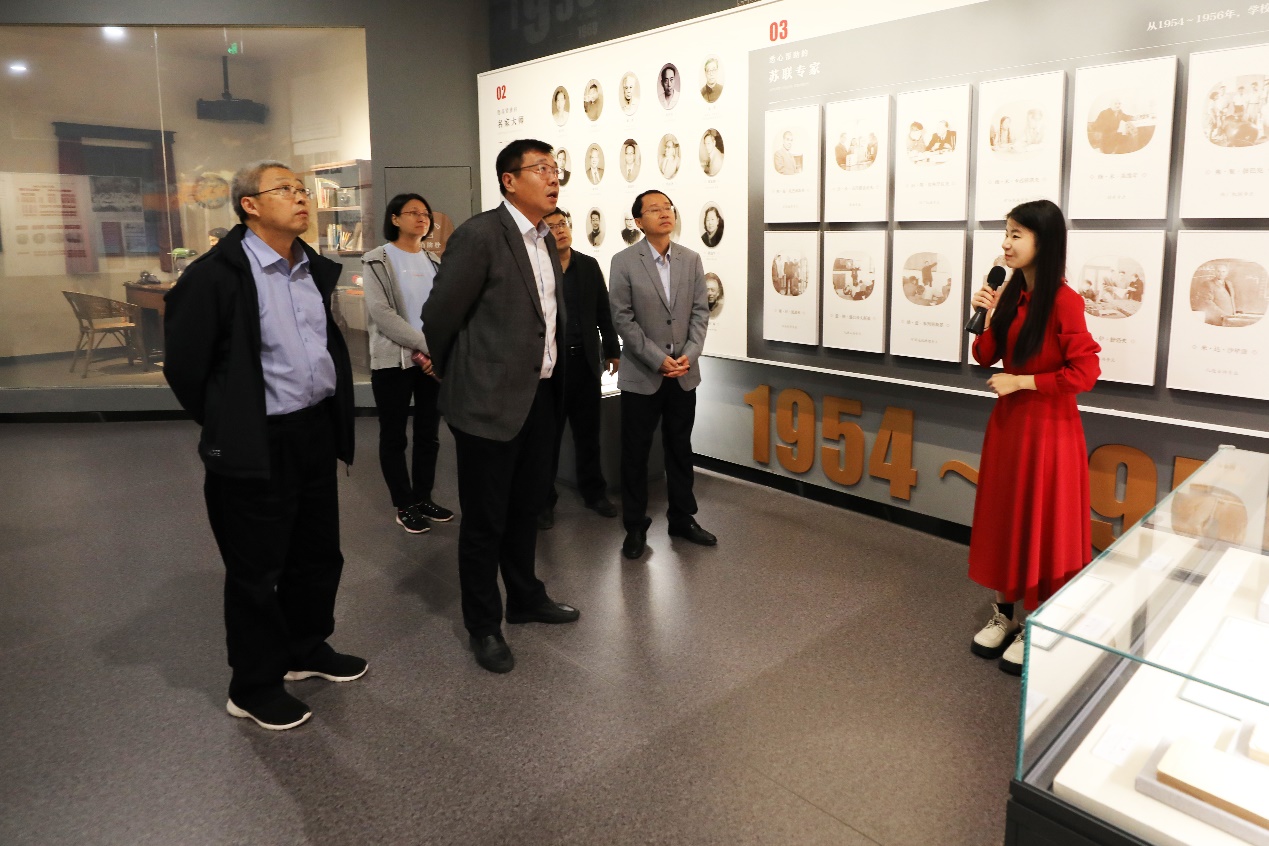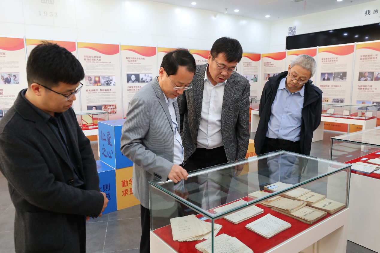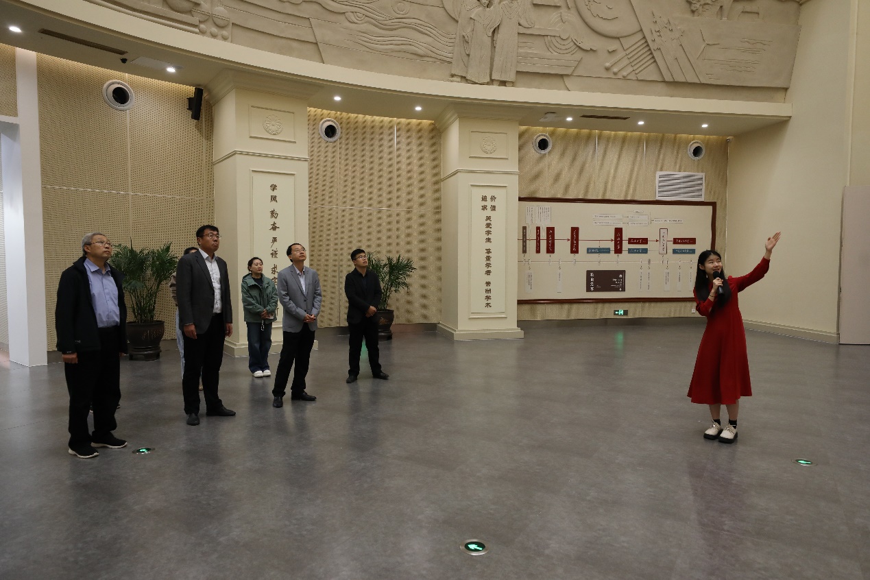 随后,调研组实地参观“致敬·风范——弘扬科学家精神、传承教育家精神”图文实物展和校史馆。校史馆内丰富的历史资料和实物展品,让孟宪喆一行对学校发展历程和辉煌成就有了更加直观和深入的了解。参观过程中,双方就档案史料挖掘、展示与利用进行深入交流。