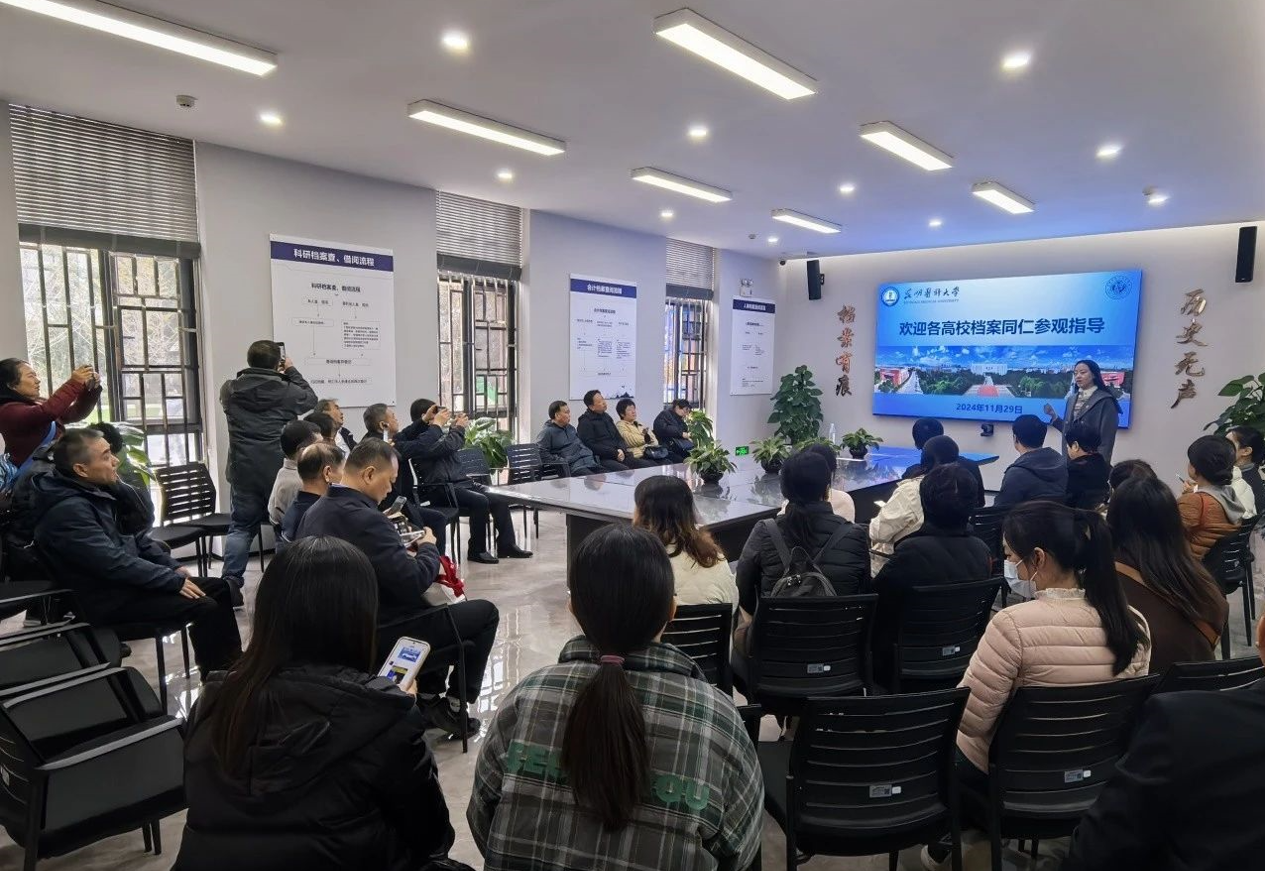 在昆明医科大学档案馆,档案馆馆长王媛就档案工作特色、档案业务考核机制、档案信息化建设和实物档案管理的方式方法等方面进行了介绍。