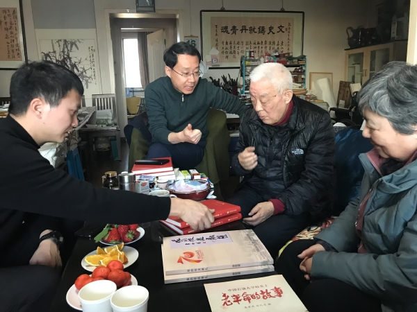 1月16日,档案馆馆长刘积舜、综合管理部主任张大宇赴北京走访余世诚和北京石油学院首任院长闫子元后代。
