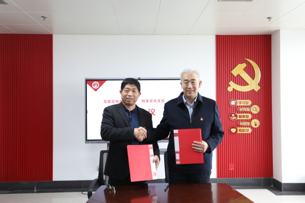 党委宣传部党支部书记赵放辉、档案馆党支部书记靳国栋代表双方支部签订了共建协议,这也是2021年双方党支部结对共建以来以项目化形式签订的首个共建协议。