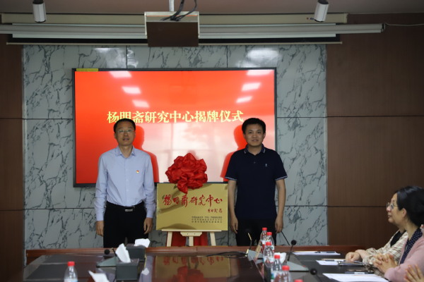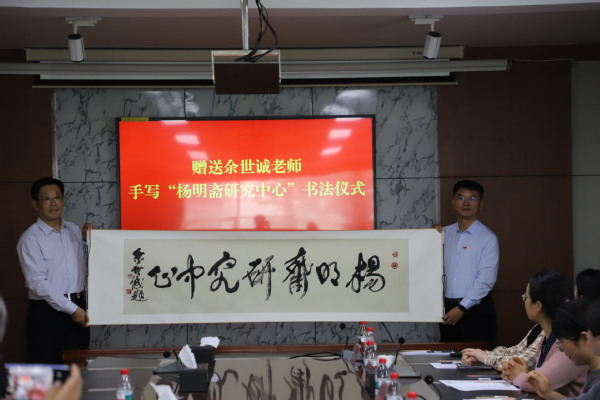 于华帅赠送由余世诚教授题写的“杨明斋研究中心”题字。