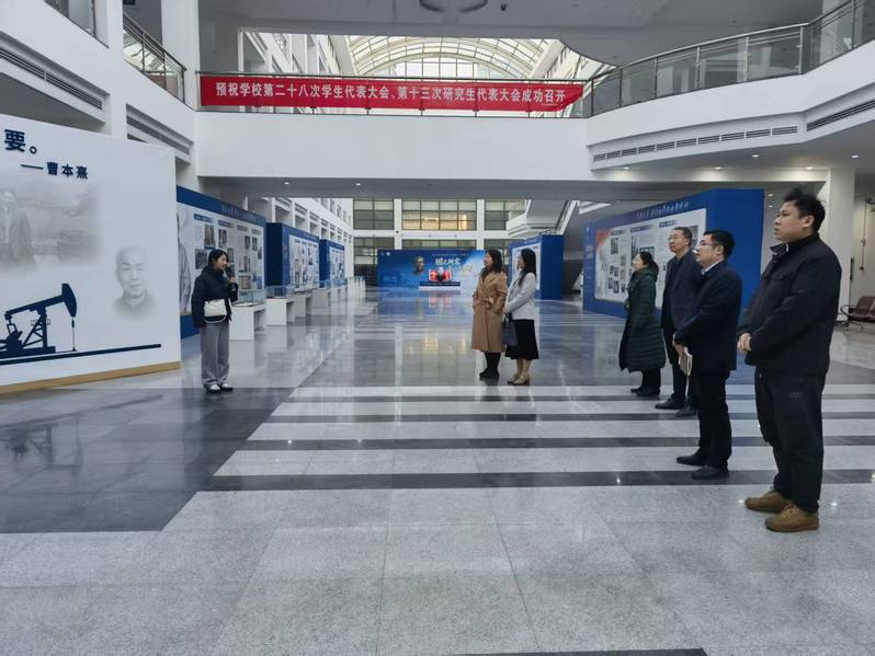 11月7日,经济管理学院党委书记朱华、党委副书记孟兆刚,以及负责新闻宣传相关工作的教职工参观纪念曹本熹院士诞辰110周年:国之所需 吾之所向——曹本熹院士与共和国石油科教、‘两弹一星’特展。校史宣讲团讲解员、材料科学与工程学院新能源材料与器件2301班耿雨欢讲解。