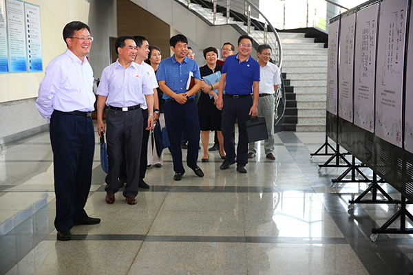 为庆祝新中国成立70周年和建校66周年,在“不忘初心、牢记使命”主题教育开展之际,图书馆党委、档案馆主办的“执古之道,御今之有——习近平用典图文展”于9月24日至10月15日在图书馆(总馆)一层大厅开展。党委书记王勇,副校长李兆敏、张玲玲、操应长,党委副书记万云波,党委常委、党委办公室、学校办公室主任田丰及相关部处负责人陪同教育部直属高校“不忘初心、牢记使命”主题教育第五巡回指导组组长杜向民一同观看展览。