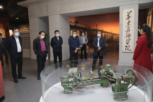 421日,山东石油化工学院党委书记孟晓雷,中国科学院院士、院长徐春明,党委副书记、常务副院长张英杰,党委委员、副院长冯其红等一行来校交流合作。期间,在副校长姚军,党委常委、校长助理田丰等人的陪同下参观了校史馆。