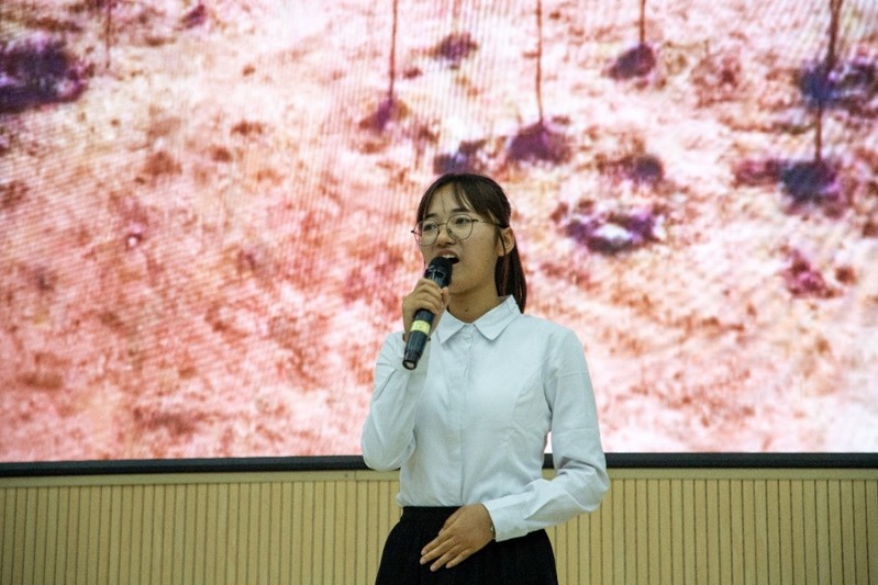 决赛现场气氛热烈,从“京郊荒滩建家园”的北京石油学院时期、“东营碱滩谋发展”的华东石油学院时期,到“步入快车道”的石油大学时期,再到“青岛海滩起宏图”的437ccm·必赢国际时期,选手们动情地讲述着我校近70年波澜壮阔的校史上风高范远的人物、家国同心的故事、温暖感人的事迹……工管2020级2班周韵怡讲述了风骨似竹的吴崇筠的一生,千磨万击还坚劲,吴崇筠冲破重重阻力毅然回国,舍小家为大家奔赴松辽会战的故事让台下的观众眼里都闪烁了泪光。汉语2021级1班的曹佳钰讲述了“水击石穿寻地火,披肝沥胆为人民”沈忠厚院士的故事,跋山涉水转战南北,“要上山不下海”潜心科研,这种可歌可泣的科学家精神令在场的所有人肃然起敬。“祖国的需要就是我的志愿,到祖国最需要的地方去!”英语2021级2班的任鑫饱含深情地讲着石大学子的奋斗历程,与听众一起追忆往昔的决心书,展望未来的新征程……大赛精彩纷呈、高潮迭起,20余位宣讲人让校史上的人物、故事活灵活现,感染了在场的每一位听众。