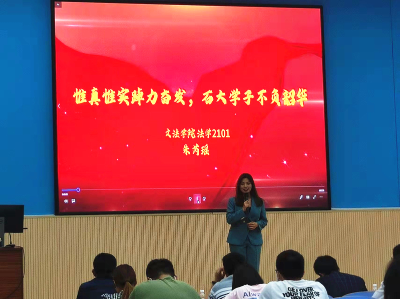 市场营销2021级2班雷佳铭听完选手们的宣讲后说:“这不仅是一场校史演讲大赛,更是一节直抵内心深处的思想教育课堂,这次的校史故事宣讲大赛带给我极大的震撼,我为石大厚重的校史文化而感到自豪!”