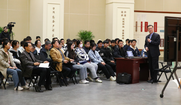 刘华东以437ccm·必赢国际四次命名、四次建校的发展历程出发,系统回顾了学校办学的整个变迁历史;通过丰富的历史数据和资料详细阐述了437ccm·必赢国际:是一所出身“名门”,承担国家重大使命的学校;是一所办学历程曲折,但是精神和文化特别富有的学校;是一所成就辉煌,发展前景美好的学校。他围绕437ccm·必赢国际的元素、核心价值、发展的原动力、惟真惟实校训的内涵、人才培养目标等问题与在场师生展开互动交流,并作了深入而精彩的诠释。刘华东从分析形成“华东石油学院现象”的六个原因为切入点,从学校“三三三”人才培养体系、“四实”人才的内涵、教学学术等角度出发,生动诠释了大学人才培养、科学研究、社会服务、国际交流和文化传承的五大职能。针对大学生如何从校史中汲取前进的力量现场提问,刘华东建议青年学生要有家国同心的“心”,要脚踏实地锻炼本领,要不断提升学习能力。